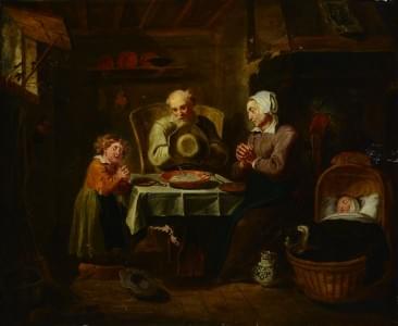 Le repas de l'enfant, huile sur panneau, 32,5x27 cm