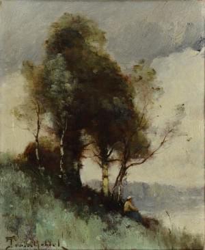 L'adieu, huile sur panneau, monogrammée DT, 17x24 cm
