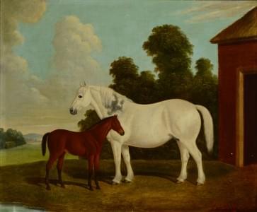 Jenny and Robin, portrait d'une jument et son poulain , huile su...