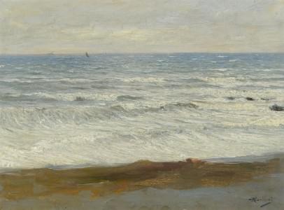 Scirocco, bord de mer, huile sur panneau signée, titrée et datée...