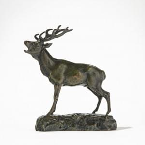 Cerf bramant, bronze à patine vert foncé, signé, H 23 cm. Biblio...