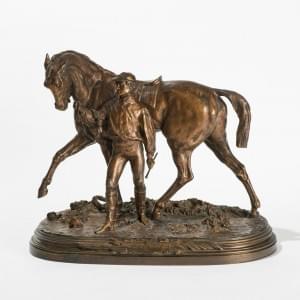 Vainqueur, bronze à patine brune, signé, 35x44 cm
