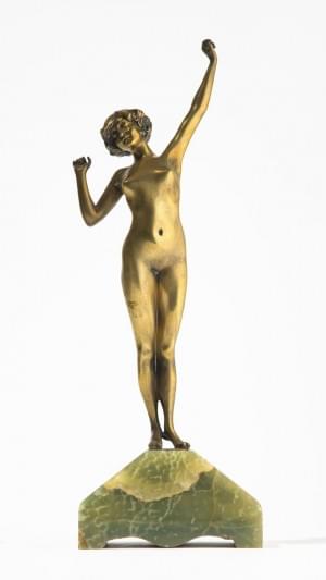 L'éveil, bronze à patine médialle, socle en onyx, signé, H 44 cm