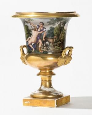 Porcelaine à décor peint d'une scène animée en réserve, fond or,...