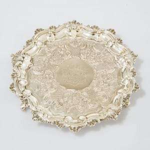 389. Plateau tripode d'époque George IV à motif de coquilles et gravé...