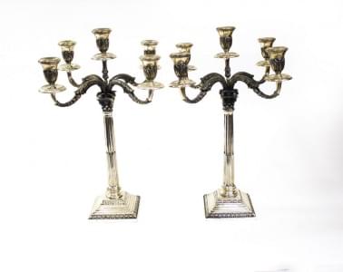 400. Paire de candélabres néoclassiques à cinq feux, le fût en colonn...