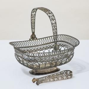 407. Corbeille ajourée en filigranne formant palmes et serpentins