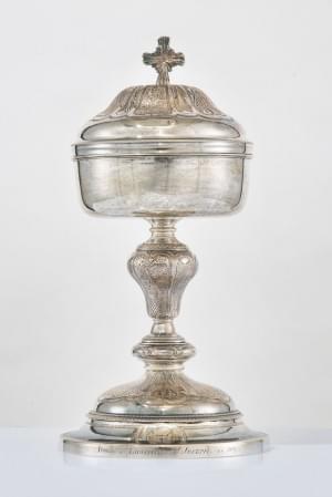 408. Ciboire d'époque Restauration, dédicace "Donné à l'Hospice St Jo...