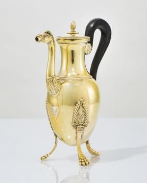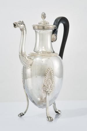 414. Cafetière d'époque Empire à décor de palmettes et têtes de cheva...