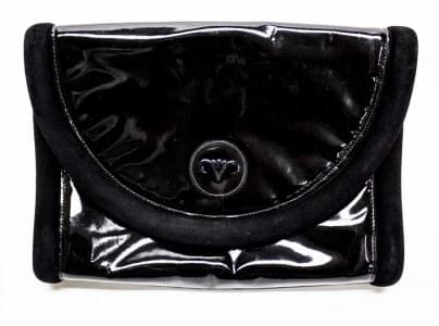 Vernis noir bordé de daim, intérieur à un soufflet, fermeture à...