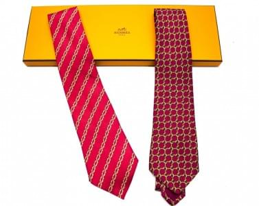 Lot de deux cravates en soie à décor géométrique sur fond rose e...