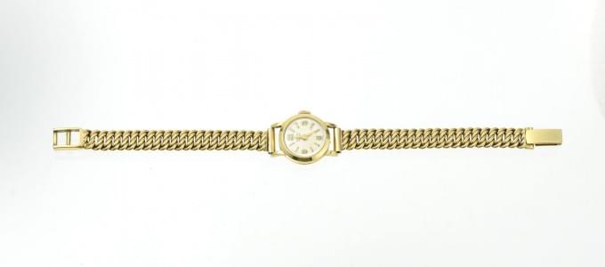 Cadran blanc, chiffres arabes, index bâton et aiguilles dorés, o...
