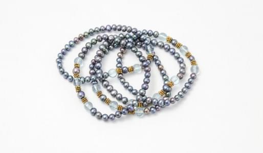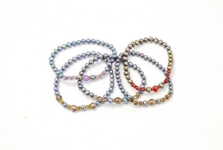 3059. Lot de 5 bracelets de perles gris foncé et de perles de verre bl...