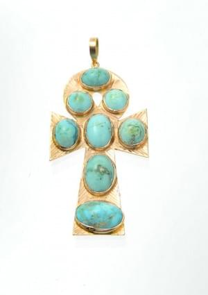 3063. Croix égyptienne sertie de turquoises en cabochon