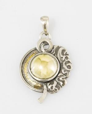 3080. Pendentif serti d'une citrine entourée de diamants
