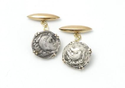 3084. Paire de boutons de manchettes sertis de drachmes d'Alexandre le...