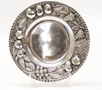 3317. Plateau de présentation rond à motif repoussé de fruits
