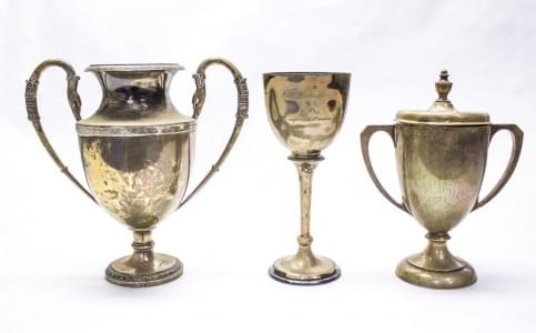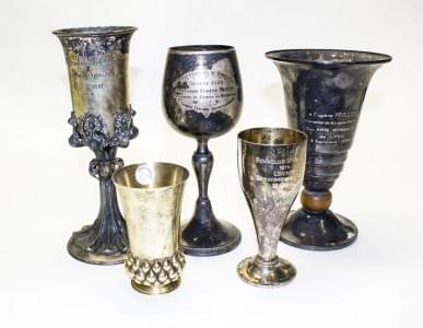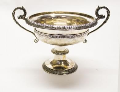 3368. Trois coupes, l'une à anses col de cygne, prix de voile 1925