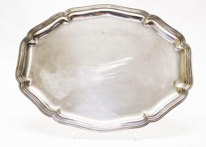 3371. Grand plat ovale festonné gravé d'armoiries d'alliance