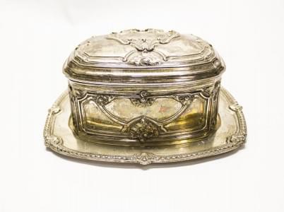 3356. Bonbonnière à anses en enroulement d'acanthes