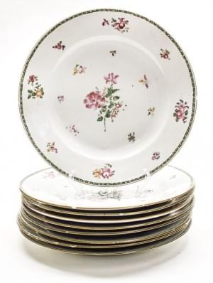 Porcelaine à décor de fleurs au naturel, bordure verte, chine, X...
