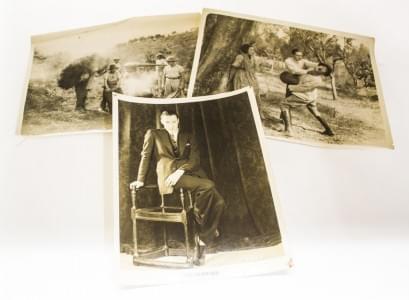 Suite de trois photographies d'acteurs et scènes de tournage, ci...