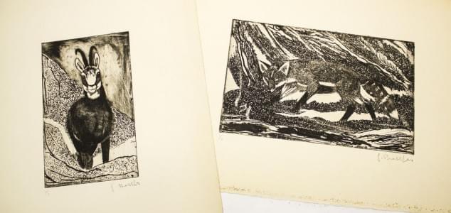 Quelques animaux, suite de quatre encres sur papier en tondo, D...