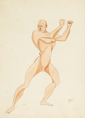 Homme nu, crayon et aquarelle sur papier, signature illisible, 2...