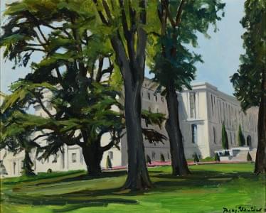 Le palais des Nations, huile sur carton, signée, 32x40 cm