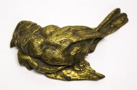 Régule patinée noire sur terrasse en marbre blanc, L 11,5 cm
