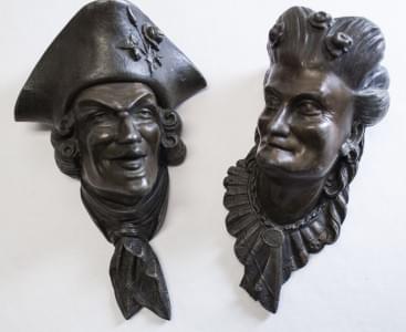3661. Paire de bouquetières figurant un couple grimaçant