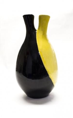 Céramique émaillée jaune et noire, datée 64, H 23 cm