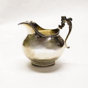 3679. Pot à crème néoclassique pansu à anse tête de satyre