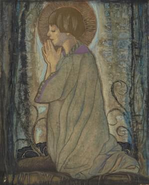 Prière, aquarelle sur papier, signée, 37x30 cm