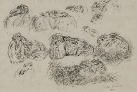 Etude de lapins, fusain sur papier, signé et daté 1995, 40x60 cm
