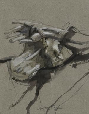 Les Mains, encre, aquarelle et gouache sur papier, titré, daté e...