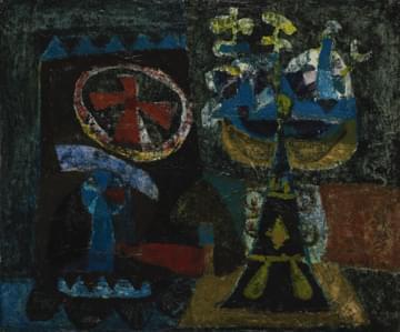 Abstraction, technique mixte sur panneau, signée et datée 52, 10...