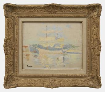 Le voilier, huile sur panneau, signée, 31x41 cm