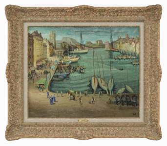 Le port de Honfleur, huile sur toile, signée, 60x73 cm