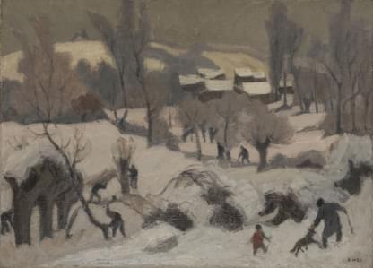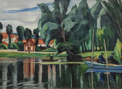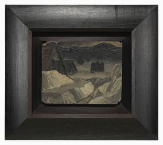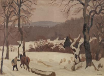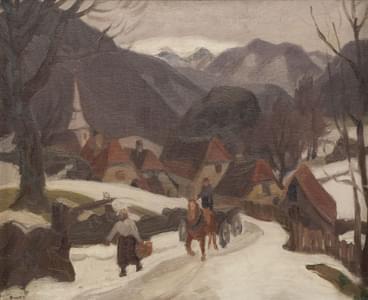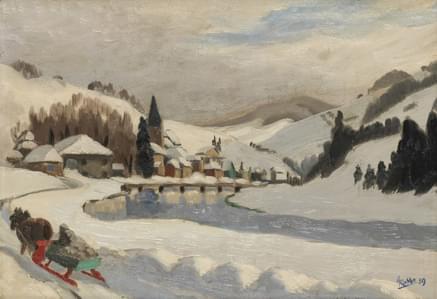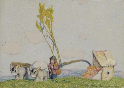 Lagernd, huile sur carton, signée, 18,5x35,5 cm