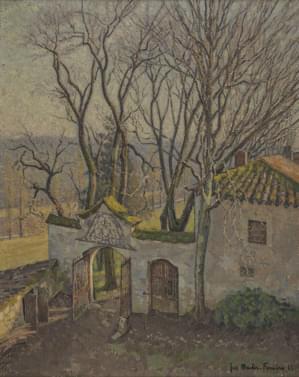 Kleines Herbstbild, huile et baguette d'encadrement, intitulé et...