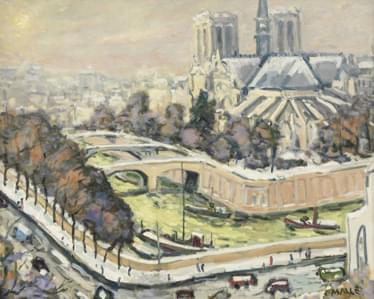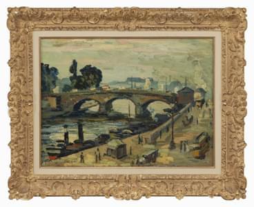 En amont du pont d'Austerlitz, huile sur toile, signée, 50x61 cm