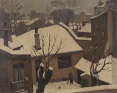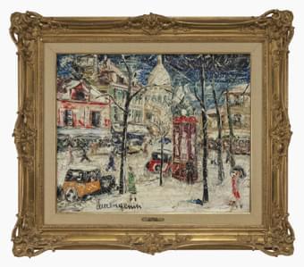 Place du Tertre en hiver, huile sur toile, signée, 60x71 cm