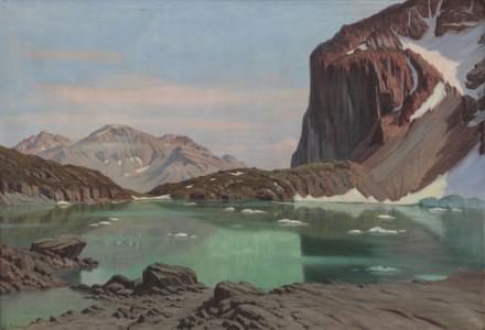 Lac de Lachauda, huile sur toile, signée, 90x125 cm