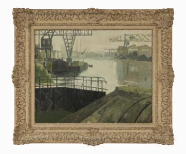 Canal de la Villette, huile sur panneau, signée, 18x23 cm
