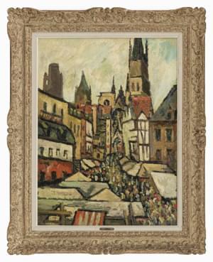 Rue de l'Epicerie à Rouen, huile sur toile, signée, 73x60 cm. Le...