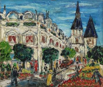 L'entrée d'un grand hôtel à Bordeaux, huile sur toile, signée, 5...