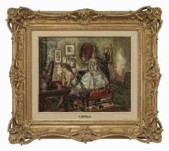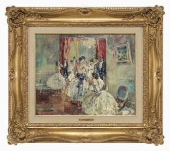 Dans la loge, huile sur toile, signée, 38x46 cm