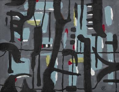 Composition abstraite, huile sur toile, monogrammée, 40x50 cm