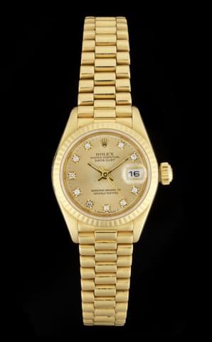 Cadran et aiguilles dorés, index en diamants, date à guichet à 3...
